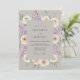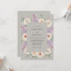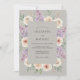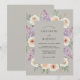 Delicate floral artistry graces this design, featuring soft peach roses and airy lilac blossoms. A gentle, romantic mood is evoked, perfect for a refined occasion. The color palette blends muted neutrals with soft floral hues.