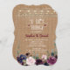 Unique, rustic design card featuring beautiful I DO BBQ typography (letter O replaced by a ring), hearts for initials, string lights, watercolour lavender navy blue floral bouquet, on an burlap background. Use Customize tool to add your info. See, also, my I DO BBQ Chalkboard/Barn and Gingham collection.