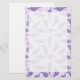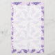 A pretty border print stationery, with a pattern of blue, purple, lavender, and white flowers on a light pink background. The writing area is supplied by a semi-transparent field which allows the print pattern to show through slightly.