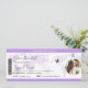 Lavender monogram boarding pass wedding ticket, a portrait of the engaged couple, a plane with a loop trail, and a customizable save the date template. Please remember to edit the text on the back of the monogram.
