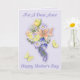 Lovely bouquet on lavender background with yellow butterflies. Text says For A Dear Aunt, Happy Mother's Day on card front. Inside has verse and areas for you to customize the Greeting and Closing text.