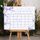 Lavender Bow Baby Shower Guess Due Date Calendar Poster – A charming baby shower game poster featuring a delicate purple bow design, perfect for guests to guess the arrival date of the baby. This elegant calendar adds a playful and stylish touch to any baby shower decor, making it a memorable keepsake for the parents-to-be.