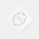 Our baby shower paper napkins feature a lavender watercolor bow and wildflower wreath - a stunning way to decorate a table at your baby shower or event.