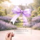 A clear, transparent background, decorated with a lavender colored large bow. Personalize and add a name and party details.