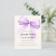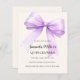 A soft beige, cream colored background, decorated with a large lavender, violet, purple colored bow. Personalize and add a name and party details.