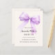 A soft beige, cream colored background, decorated with a large lavender, violet, purple colored bow. Personalize and add a name and party details.