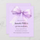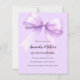 A soft lavender, purple colored background, decorated with a large bow. Personalize and add a name and party details.