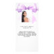 Birthday party menu card. Personalize and add a name, age, date and the menu. A white background and a large lavender, violet colored bow.
