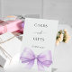 White elegant background, decorated with a large lavender colored bow. Text: Cards and Gifts. Thank you!