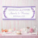 Add this Lavender Breeze Wedding Reception Hanging Banner to your Wedding Accessories. Designed with the text: CONGRATULATIONS, The Bride & Groom's First Names and Wedding Date, along with a Lavender floral trim, this banner can be personalize, using our easy template. Be sure to view all the pieces of this Lavender Breeze Floral Wedding Stationery Collection. Enjoy!