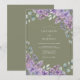 Delicate lavender blossoms and muted sage foliage create a soft, romantic feel. This painterly design evokes a sense of natural elegance, perfect for a springtime celebration. The airy composition with subtle watercolor textures brings a whimsical charm.