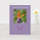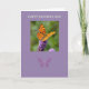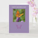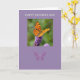This card features a detailed butterfly with orange wings dotted in black, resting on a tall cluster of tiny purple flowers, as if pausing for a quiet, affectionate moment with the blooms ❤️. Behind it, the background fades into a soft green blur that keeps the focus on the butterfly and blossoms. The main image sits on a solid lavender field that feels calm and gentle, like a friendly embrace. Above the picture, a short greeting appears centered near the top in a classic serif font, set in a dark ink for easy reading. The careful spacing leaves plenty of breathing room around the words and artwork, giving the scene a relaxed, romantic hush. Near the bottom, a thin line drawing of another small winged insect adds a light echo of the theme, like a subtle companion 🌼. The lower illustration is placed beneath the central image and appears in a pale, etched outline against the lavender background.