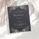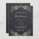 Chackboard background decorated with lavender flowers and eucalyptus greenery. Personalize and your names and details.