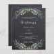 Chackboard background decorated with lavender flowers and eucalyptus greenery. Personalize and your names and details. Add your wedding website url to the QR-code for details and/or RSVP.
