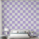Checkered wallpaper in lavender color. Modern minimalist geometric square pattern peel and stick wallpaper.