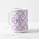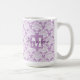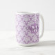 This beautiful coffee mug features a simple yet elegant design of white damask pattern on a lavender or dusty purple background. The mug is personalized, with a Monogram initial letter as well as a name, which are both customizable. Great gift for anyone wants a mug with a pretty feminine design.