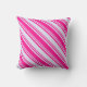 This throw pillow design features a striped pattern having colors like lavender and deep pink.