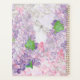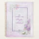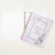 This elegant wedding planner has soft art brushed background in a textured lavender paper. Layered on it are watercolored floral lilac blooms with a custom layout of title and bride and groom names.