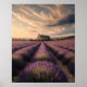 Romantic lavender fields glowing under a pastel sunset sky in southern France.