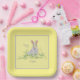 Lavender Easter Bunny Yellow Background Square Pa Paper Plates