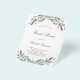 A white background decorated with lavender flowers and eucalyptus greenery. Personalize and a name and details.