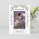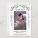 A modern wedding Save the Date photo card. Decorated with lavender florals, flowers and eucalyptus greenery. Personalize and add your photo, date, names.