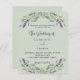 A sage green background decorated with lavender flowers and eucalyptus greenery. Personalize and your names and details.