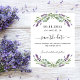 A modern and elegant Save the Date for a wedding. A white background decorated with lavender flowers and eucalyptus greenery. Personalize and add a date and your names. The text: Save the Date is written with a large trendy hand lettered style script.