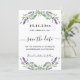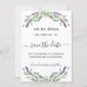 A modern and elegant Save the Date for a wedding. A white background decorated with lavender flowers and eucalyptus greenery. Personalize and add a date and your names. The text: Save the Date is written with a large trendy hand lettered style script.