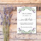 A modern and elegant Save the Date for a wedding. A white background decorated with lavender flowers and eucalyptus greenery. Personalize and add a date and your names. The text: Save the Date is written with a large trendy hand lettered style script.