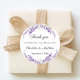 Seal your wedding favors with this elegant lavender thank you sticker. The design features a delicate watercolor wreath of purple lavender sprigs and soft green eucalyptus foliage. These labels are perfect for late summer or fall weddings following a rustic garden theme.