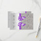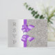 Personalized wedding RSVP flat cards / invitations. Elegant custom silver and lavender color double sided response cards with a beautiful sparkly printed glitter sequins pattern, cute shiny printed graphics vector bows and ribbons and pretty, stylish printed image diamonds bling jewels and purple font. These classy glamorous, fashionable, vibrant, lilac, lavender, purple and silver rsvps are decorated on both sides. Beautiful, chic, trendy, modern double sided cards with glitz and glamour. Please note: All invites on Zazzle have flat printed graphics - not real bows, jewels or sequins. I have matching products for weddings in my store. Text, font and colors of font are all personalizable / personalisable to meet your needs. If you need assistance customizing your product please contact me through my store. I will be happy to help.PLEASE NOTE:- All invitations on Zazzle have flat printed images.