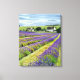Dream of endless purple fields. This stunning canvas print showcases a beautiful lavender field under a serene sky, with distant homes adding to the rustic charm. Bring the calming essence of the countryside into your home with this vibrant and peaceful artwork. A perfect addition for creating a relaxing and inviting ambiance