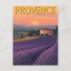 This beautiful card features a vintage-style illustration of the rolling lavender fields of Provence, France, at sunset. The design captures a classic scene of a traditional stone building nestled among the vibrant purple rows, with cypress trees and hills in the background. The warm, golden hour light and retro typography give it the feel of a timeless travel poster. It's the perfect card for a note from your travels or a gift for a nature and art lover.