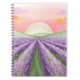Immerse yourself in a soothing lavender field at sunset with this calming notebook cover. Soft pastel pink and orange skies stretch across the horizon while a gentle breeze rustles the lavender blooms. Perfect for wellness and self-care journaling, this design evokes peace and relaxation.