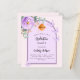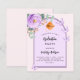 A blush pink background with a purple and violet colored arch. Decorated with a floral, rose flower, green watercolored eucalyptus greenery and butterflies. Personalize and add a name and party details.