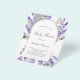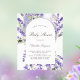 A stylish white background. Decorated with lavender floral arch frame with bees. Personalize and add a name and details.
