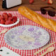 Scrapbook decoupage lavender purple wedding paper plates designed to be quickly and easily customized to your event specifics.