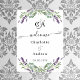A chic white background. Decorated with lavender florals, flowers and eucalyptus greenery. Personalize and add your monogram initials, names and the wedding date.