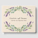 A beige, sand colored background decorated with lavender florals and eucalyptus greenery. Personalize and add your names and wedding date.