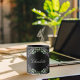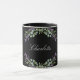 Personalize and add your name. Black background, white text. Decorted with lavender flowers and eucalyptus greenery.
