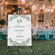 A chic white background. Decorated with lavender florals, flowers and eucalyptus greenery. Personalize and add your monogram initials, names and the wedding date.