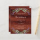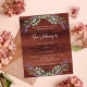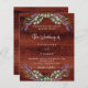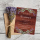Rustic brown wood as background decorated with lavender flowers and eucalyptus greenery. Personalize and your names and details.