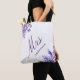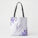 Lavender florals violet script mrs name wedding tote bag