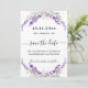 A modern and elegant Save the Date for a wedding. A white background decorated with watercolored lavender flowers. Personalize and add a date and your names. The text: Save the Date is written with a large trendy hand lettered style script.