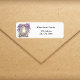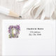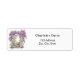 A white background. Decorated with a romantic country garden window covered with lavender colored flowers, wisteria. Personalize and add your name and address. Black letters.