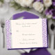 RSVP response card in simple classy florentine swirl pattern in lavender purple colors. Printed pattern has demure ribbon graphic accents on a soft off-white background, all formatted and ready for you to edit with your own details in the easy Zazzle text editor. Available in 6 colors. Matching invitation, save the date cards, table tent cards and matching inner print patterned envelopes also separately available in this collection. *Allow extra weeks for custom matched envelopes.