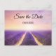 Save the Date postcard with a painting of lavender flower field. Great for a country or French style wedding, or a wedding with a purple, lavender or lilac theme.