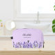 Violet background. Decorated with lavender flowers.