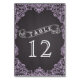 Vintage lavender purple scroll leaf frame and chalboard wedding table number place card featuring a lavender purple vintage frame of scroll leaves on a charcoal grey chalkboard or blackboard background and your text. A modern and contemporary approach to a vintage theme. This retro template design is part of a wedding set, is fully customizable and can be personalized.